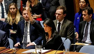 U.S. Ambassador to the United Nations Nikki Haley vetos an Egyptian-drafted resolution regarding recent decisions concerning the status of Jerusalem, during the United Nations Security Council meeting on the situation in the Middle East, including Palestine, at U.N. Headquarters in New York City, New York, U.S., December 18, 2017. REUTERS/Brendan McDermid – RC19707F9890 rattling and cooperate with the UN Security Council’s desire to investigate these charges.