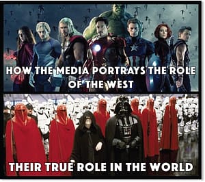 “forced” into using our military as “the last resort” in “fighting for democracy, freedom and human rights” in another part of the world, keeps the public subdued, pliable and supportive of The Empire’s latest acts of international barbarism.