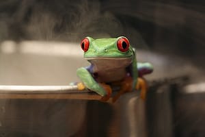 Put your wiggling, green frog into the kettle. Set the kettle onto the burner. Wait…