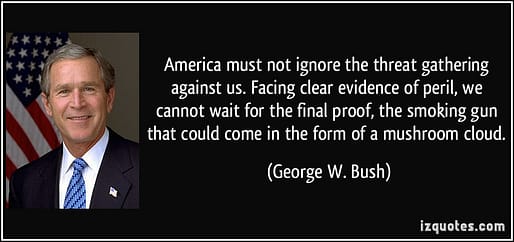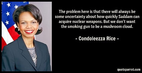 Gerson is widely regarded as the author of the “smoking gun/mushroom cloud” fear-mongering metaphor that became the most effective rhetorical trick used by Bush officials in promoting the Iraq War. (Check out Gerson’