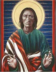 As I watched people pass through the baptismal water, I was also happy to have come across the painting of Jesus included with this post. The artist is a Mexican Roman Catholic priest who portrays Jesus as an Amerindian.
