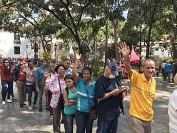 “I’m at Simon de Bolívar square in Caracas where Venezuelans are lining up for blocks to sign a declaration denouncing US intervention and imperialism. One man waiting just told me: ‘Please put in your picture that we’re not invisible and not being paid.’