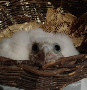 Lola at 17 days having her first meal at her new home. prairie and peregrine falcons will imprint up to the age of 21 days. There are both pros and cons to training an imprinted falcon. I have never done it before, and I am experimenting. So, I decided to give it a try for a variety of reasons. Maybe I will talk more about imprinting on another day.