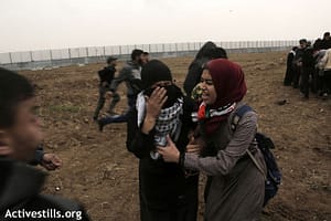 As always, they were met by armed Israeli tanks and soldiers on the opposite side of the fence. That’s right. It’s sling shots against tanks. And it’s not really a “border.” Israel has no internationally recognized borders. Palestinians and the Israeli military face-off at a prison fence.